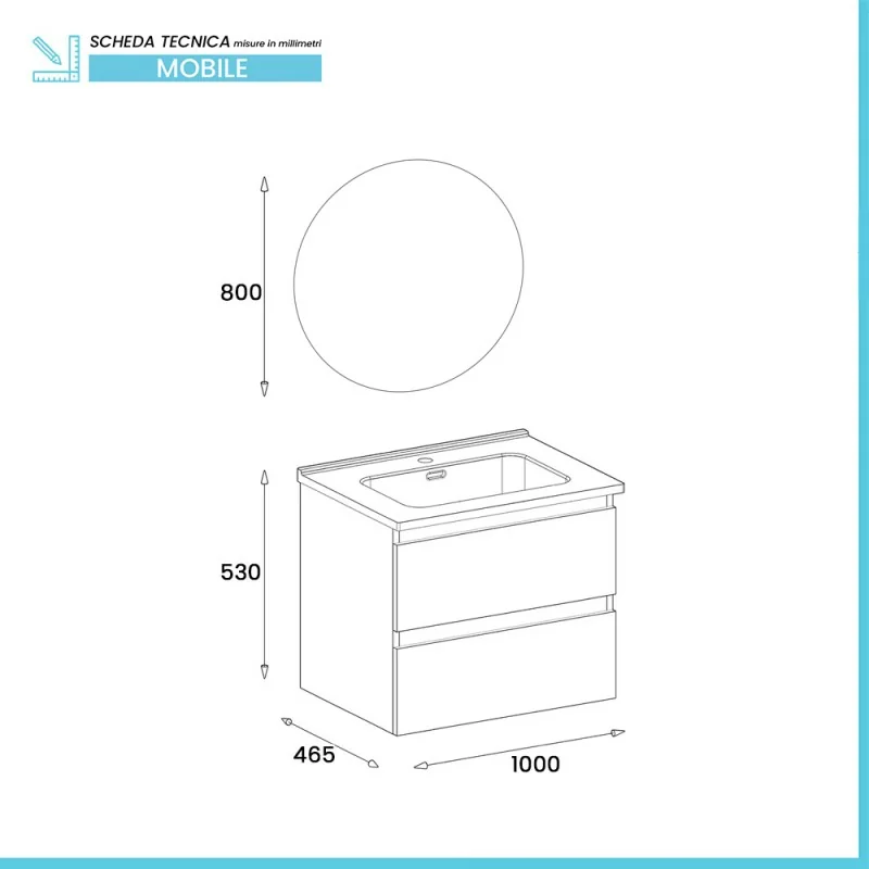 • Dimensioni mobile: H 53 x P 46,5 x L 100 cm;