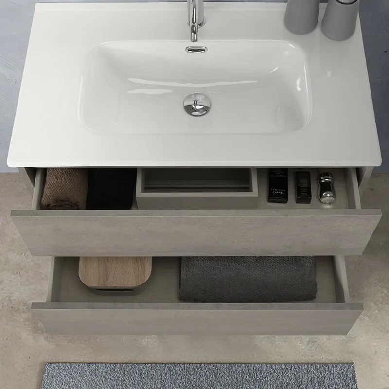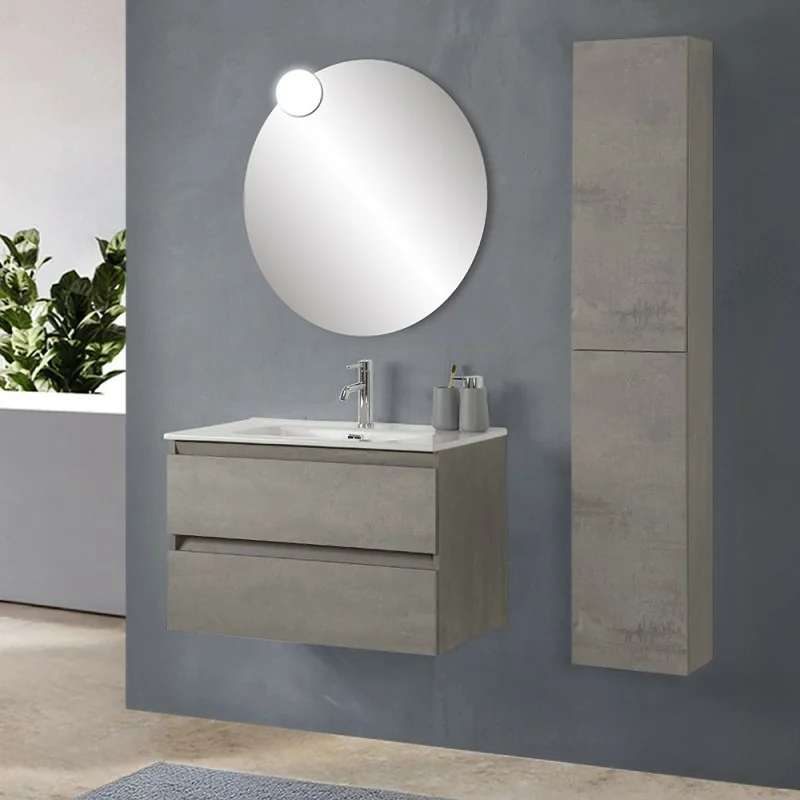 Mobile bagno sospeso 100 cm in legno grigio cemento 2 cassettoni con lavabo e specchio Leda