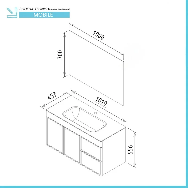 • Dimensioni mobile: H 55,6 x P 45,7 x L 101 cm;