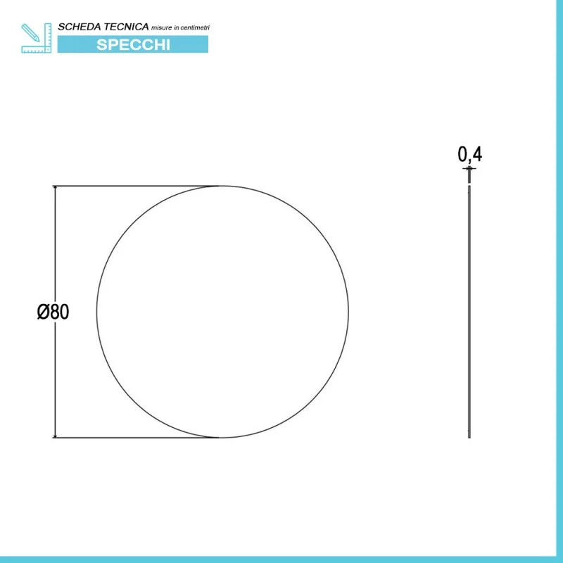 • Dimensioni specchio: diametro 80 cm x spessore 4mm;