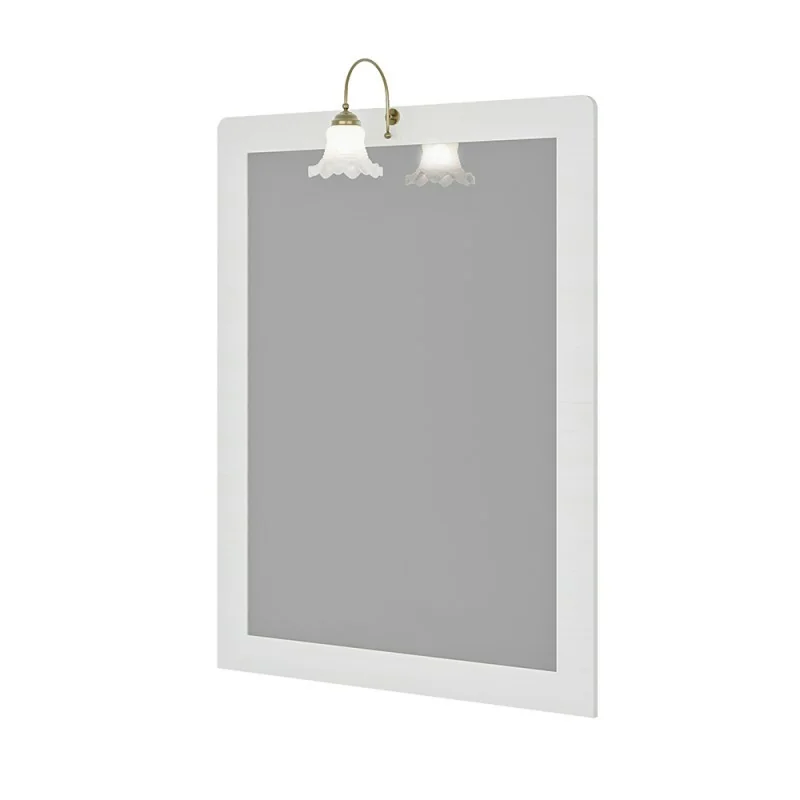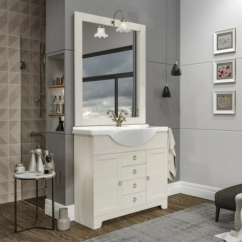 Mobile bagno a terra 85 cm bianco decape con lavabo specchio e lampada Romantica