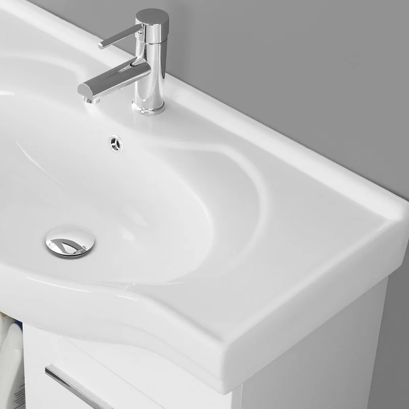 Mobile bagno sospeso 81 cm bianco lucido 2 ante con ceramica e specchio
