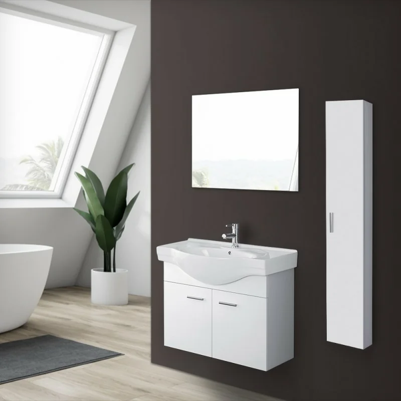 Mobile bagno sospeso 80 cm bianco completo di lavabo e specchio Desya