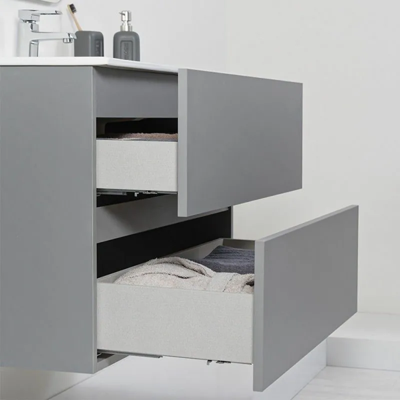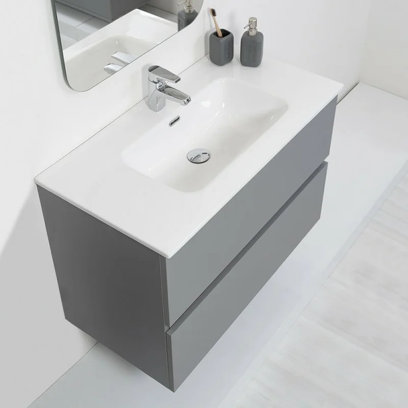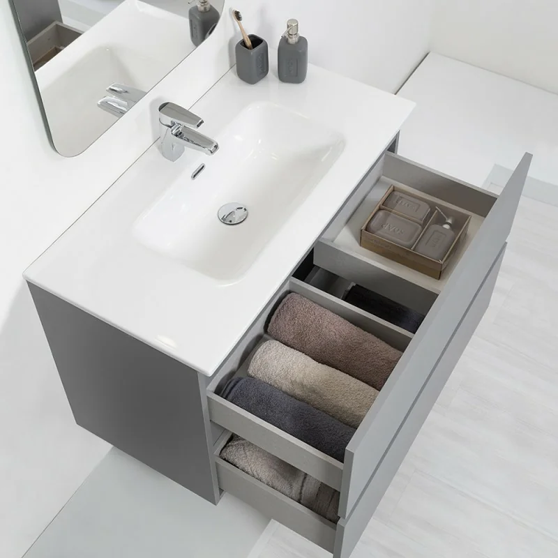 Mobile Sospeso Bagno Moderno 2 Cassetti L.90 cm Grigio Pastello con Specchio