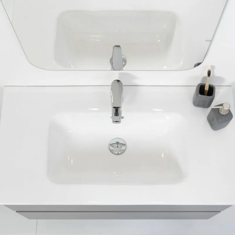 Mobile Bagno Moderno Sospeso 90x47 Grigio Pastello con Specchio