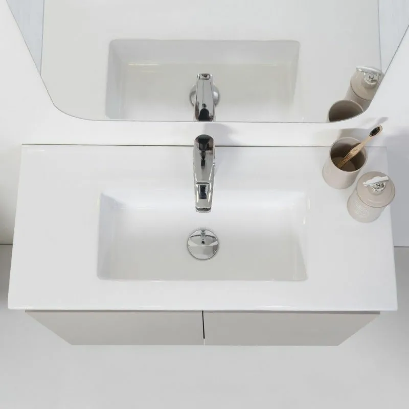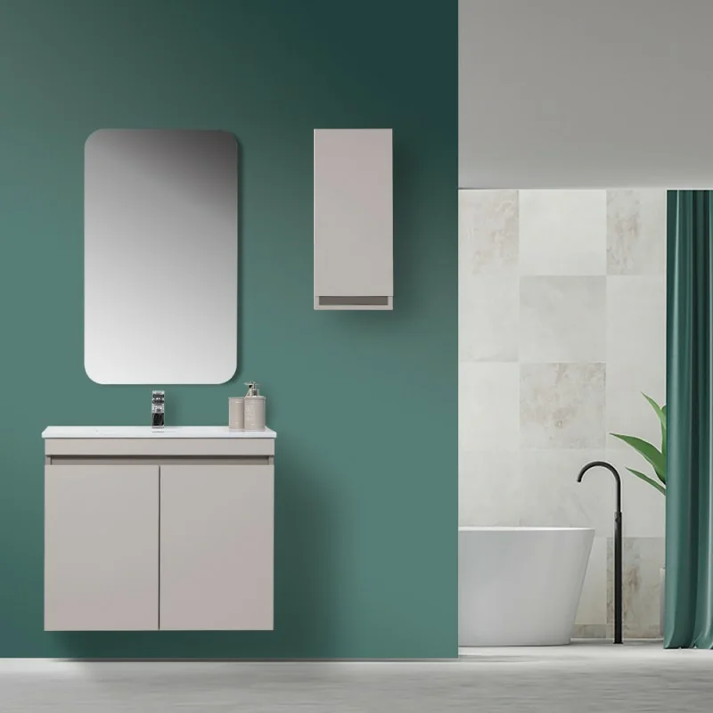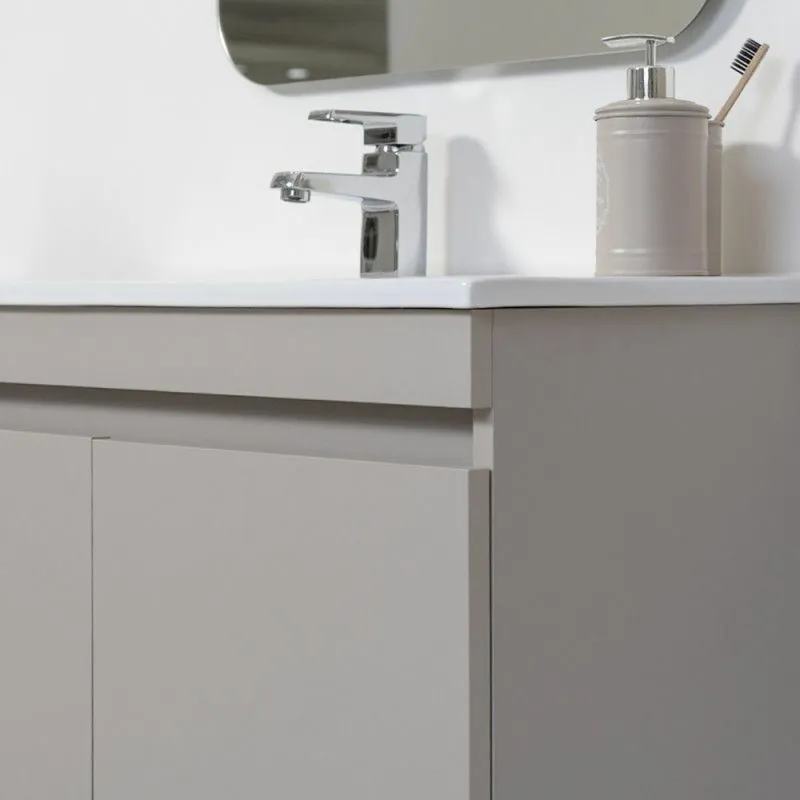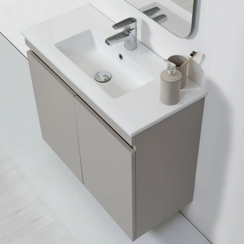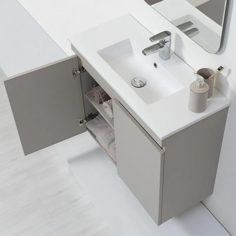 Mobile Bagno Sospeso 2 Ante Tortora L.80 cm Finitura Pastello con Specchio completo di Vasca in Ceramica