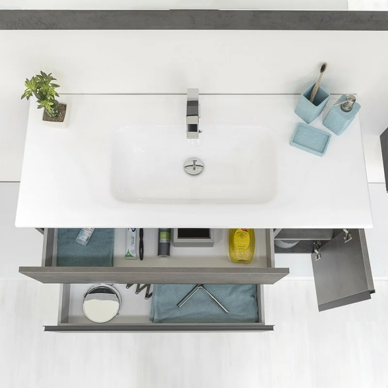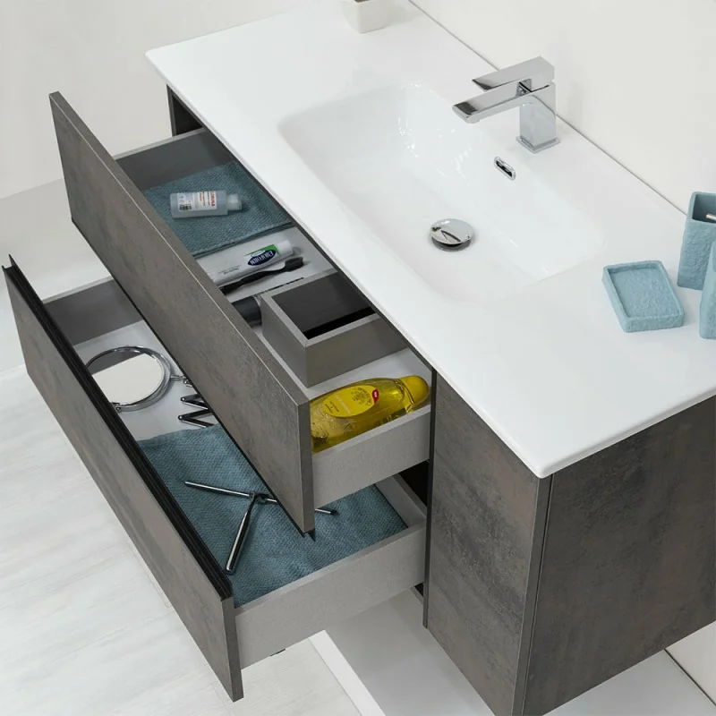 • Tipologia: Mobile Bagno da 90 cm con 2 cassetti e un'anta in Effetto Pietra Oxid