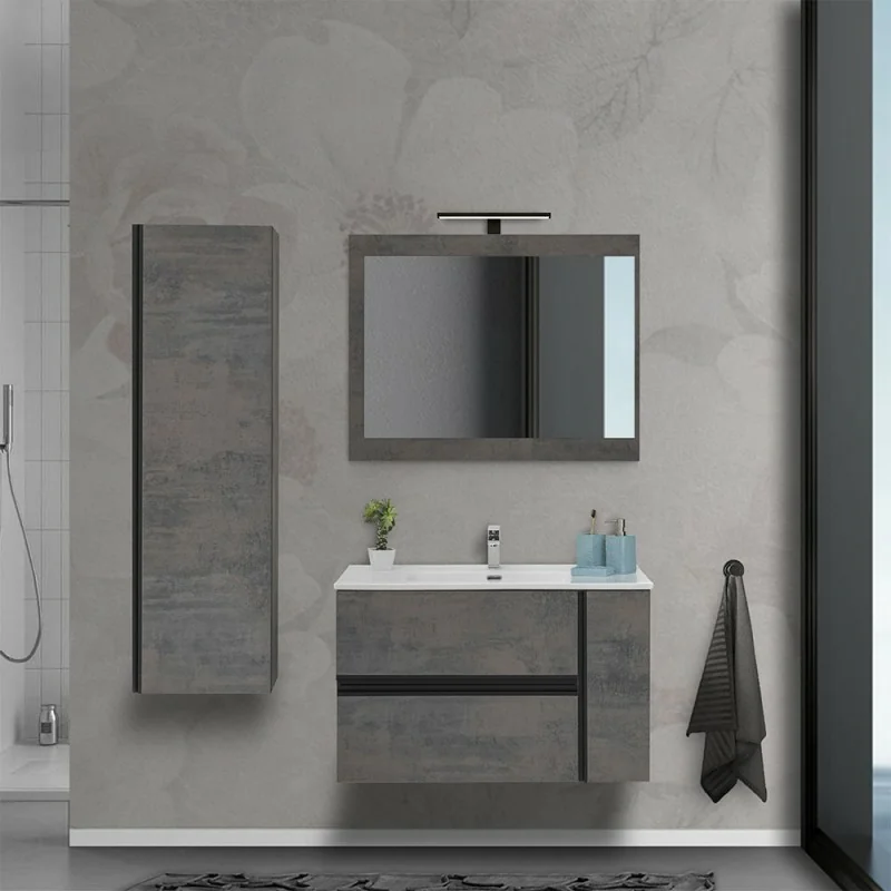 Mobile Bagno Sospeso Effetto Pietra Oxid 90 cm