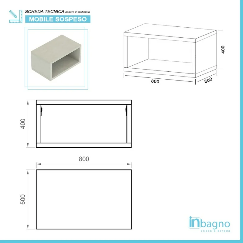 • Tipologia:mensolone con ripiano sottostante sospeso da 80 cm colore grigio nuvola