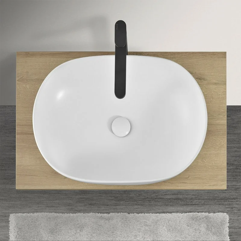 Il top per lavabo da appoggio è perfetto per chi cerca una soluzione salvaspazio con un tocco di design contemporaneo. Realizzato con robusti pannelli in legno nobilitato, garantisce un'elevata resistenza all'umidità. La sua superficie non preforata offre la libertà di personalizzare la posizione del lavabo durante l'installazione