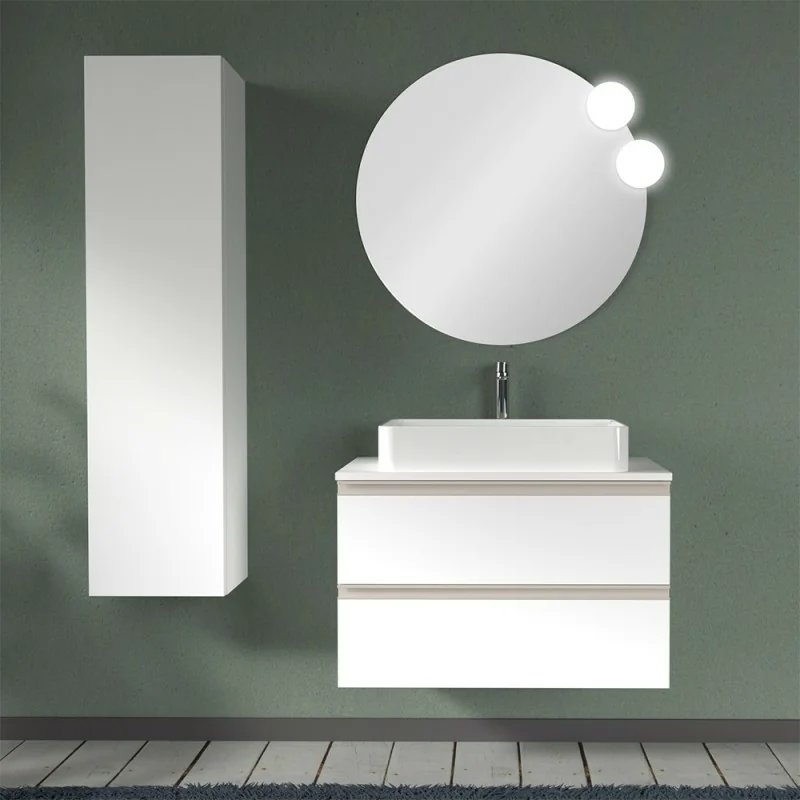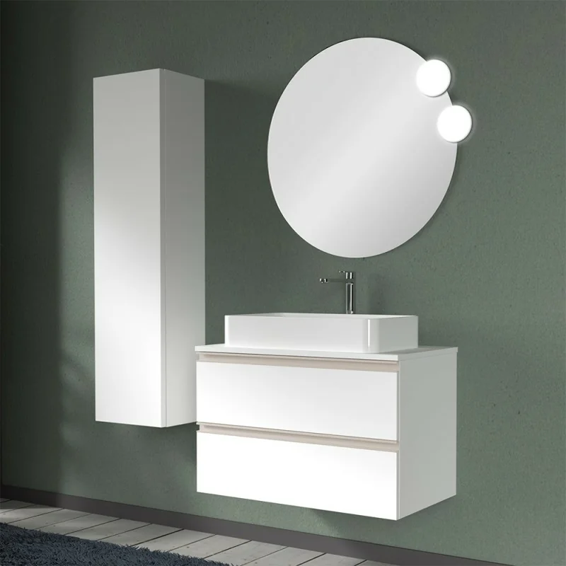 Mobile bagno sospeso 80 cm linea Master bianco opaco con top e specchio