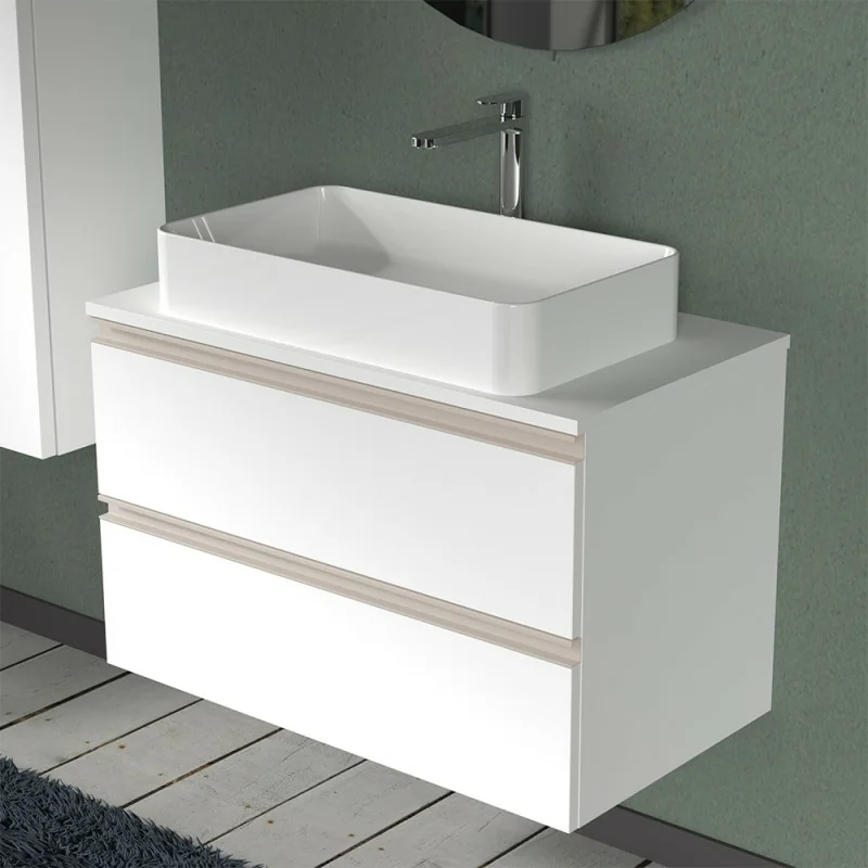 Mobile sospeso 80 cm per installazione lavabo d'appoggio finitura bianco opaco 2 Cassetti