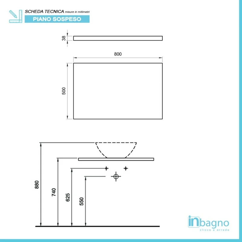 • Tipologia: mensola da 80 cm per lavabi d'appoggio;