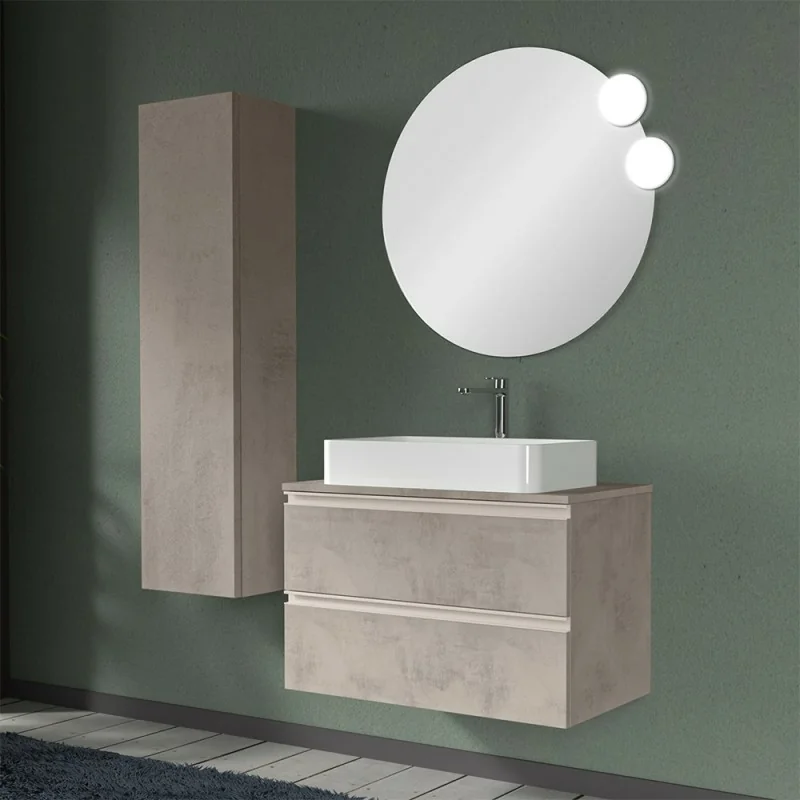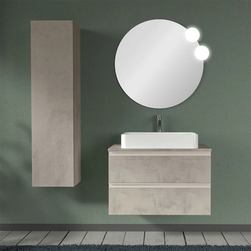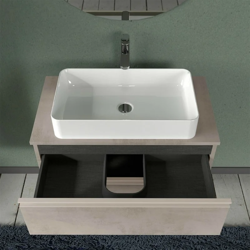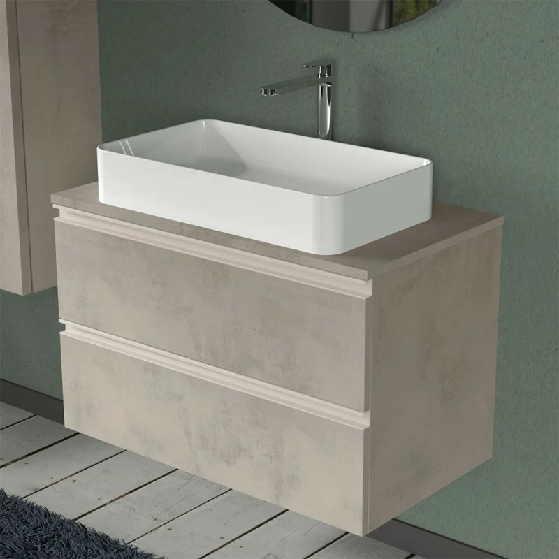 Mobile sospeso 80 cm per installazione lavabo d'appoggio finitura grigio cemento 2 Cassetti