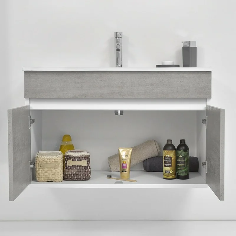 Mobile bagno sospeso da 90 Duble grigio industrial con lavabo e specchio