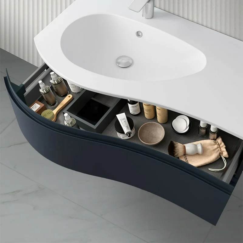 Mobile bagno sospeso curvo 90 Melody blu navy con vasca e specchio