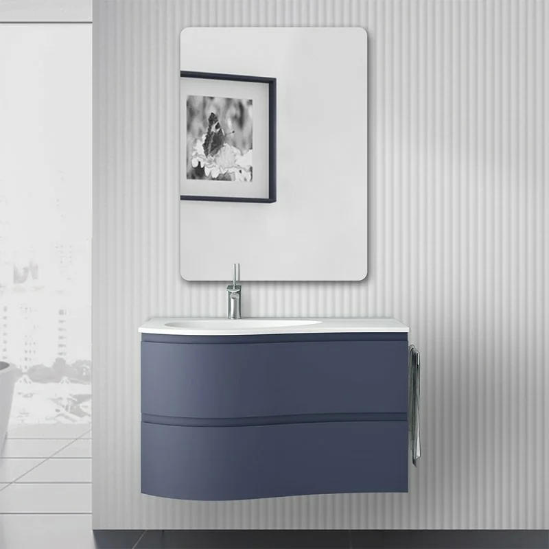 Mobile bagno sospeso curvo 90 Melody blu navy con vasca e specchio Mobiletto bagno sospeso 90 Melody blu navy con vasca e specchio Scheda tecnica Mobile bagno sospeso curvo 90 Melody blu navy con vasca e specchio Scheda tecnica lavabo con vasca decentrata del mobile bagno Melody Disponibili colorazioni differenti del mobile bagno sospeso 90 Melody Composizione bagno sospesa Melody 90 blu navy