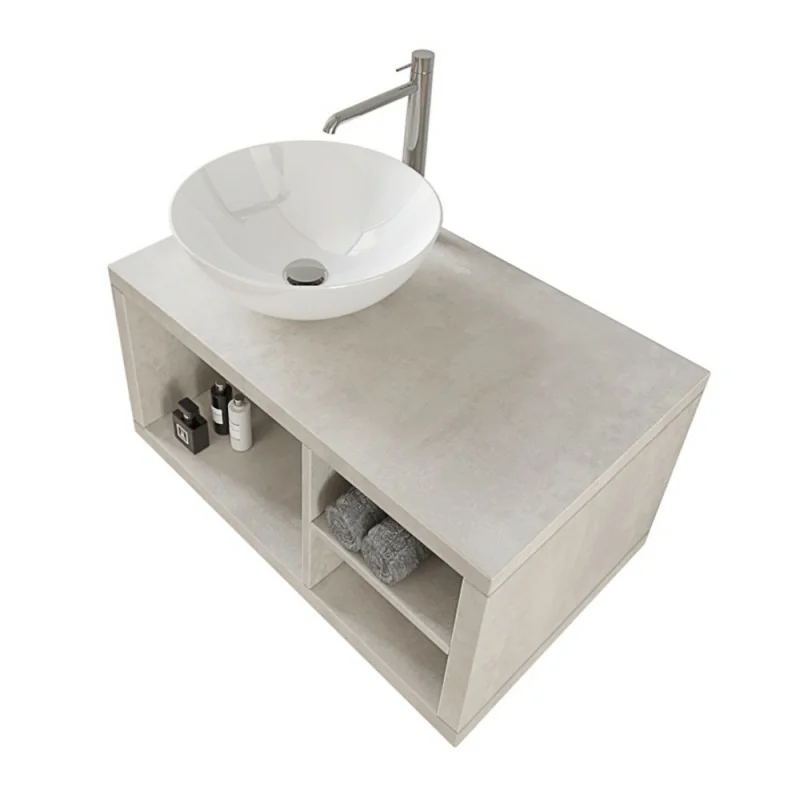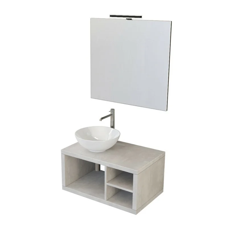 Arredo bagno sospeso 80 cm Master grigio nuvola con lavabo appoggio e specchio Mobile salvaspazio bagno sospeso 80 cm Master grigio nuvola con lavabo da appoggio e specchio Mobile arredo bagno sospeso 80 cm Master grigio nuvola completo di lavabo da appoggio e specchiera Finitura grigio nuvola dell'arredo bagno sospeso 80 cm Master