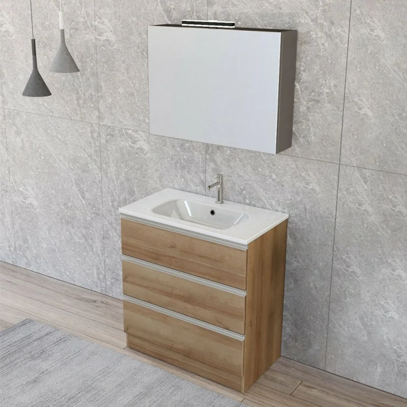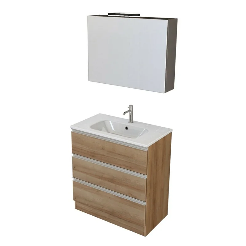Mobile bagno a terra 80 cm Master rovere con lavabo e specchio contenitore
