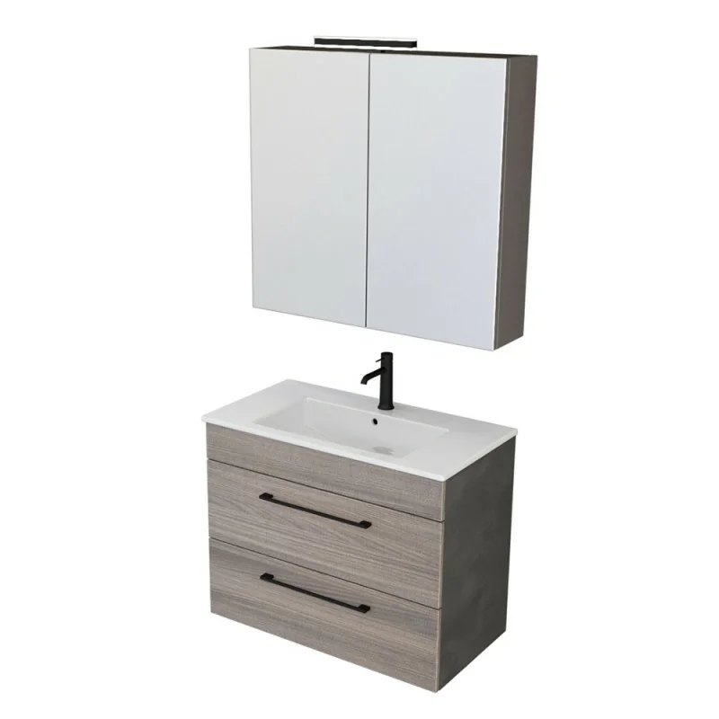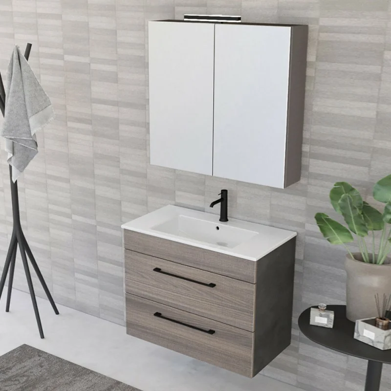 Mobile bagno sospeso 80 cm Smart olmo/lava con specchio contenitore