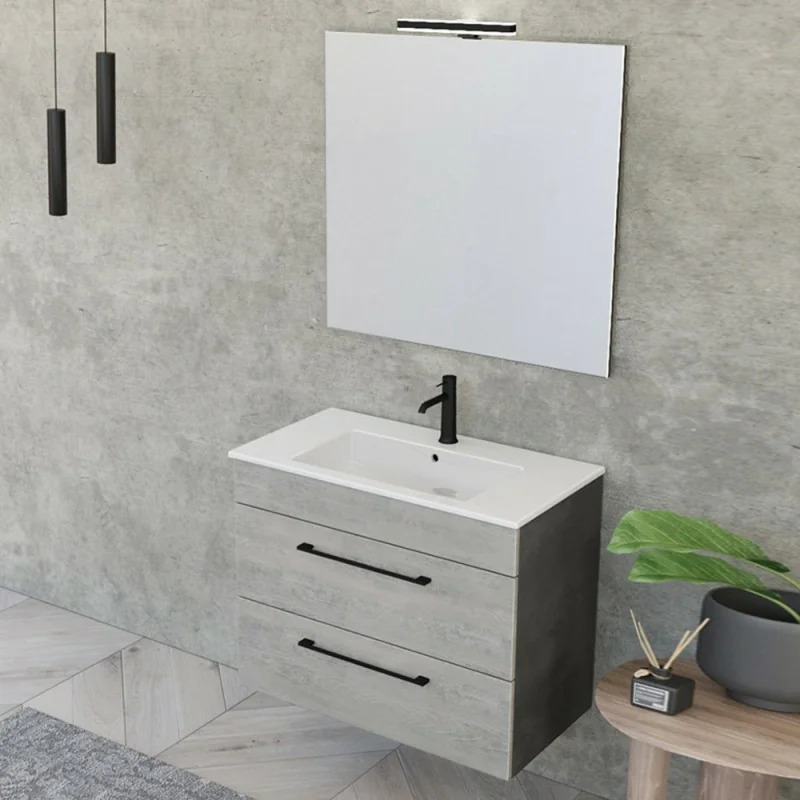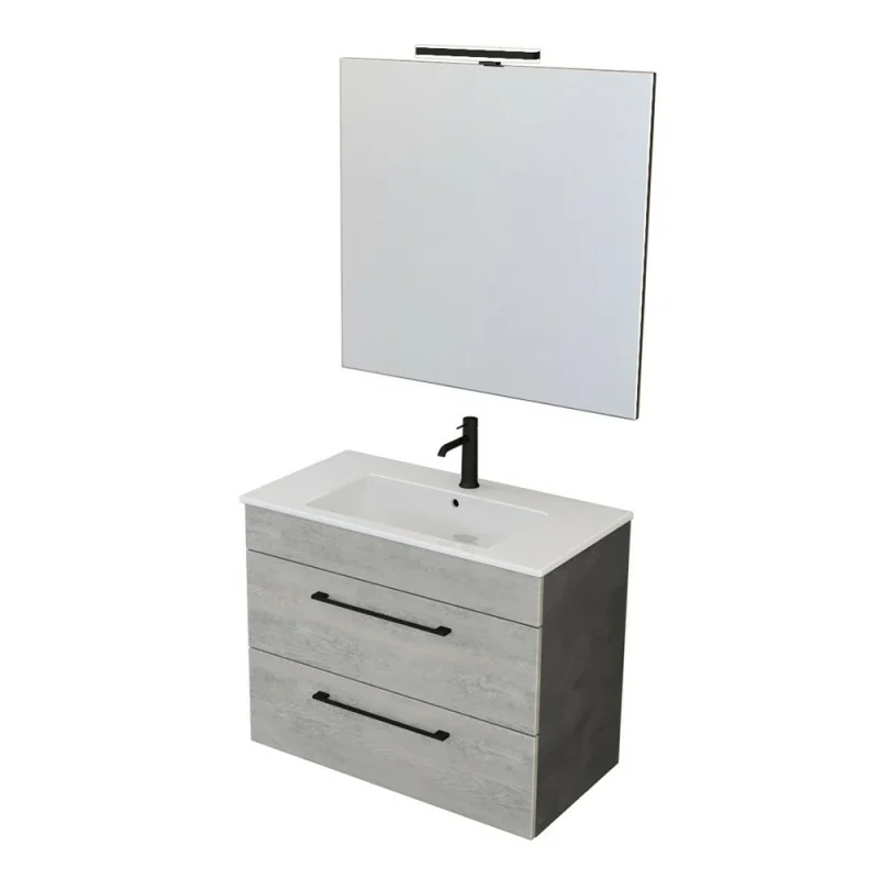 Mobile bagno sospeso 80 cm Smart grigio legno/lava con specchio