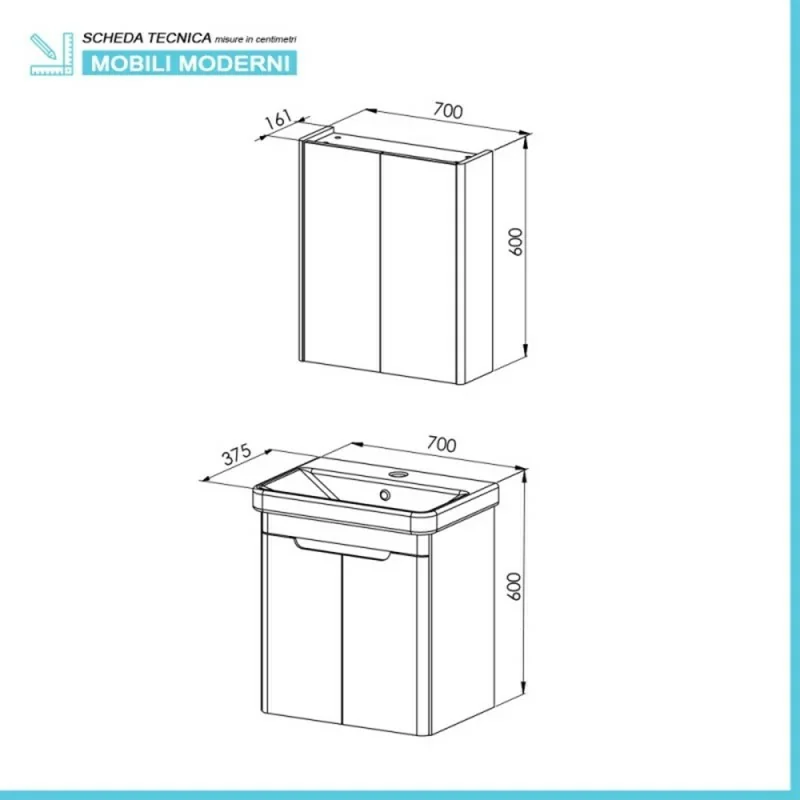 • Tipologia: mobile bagno sospeso;