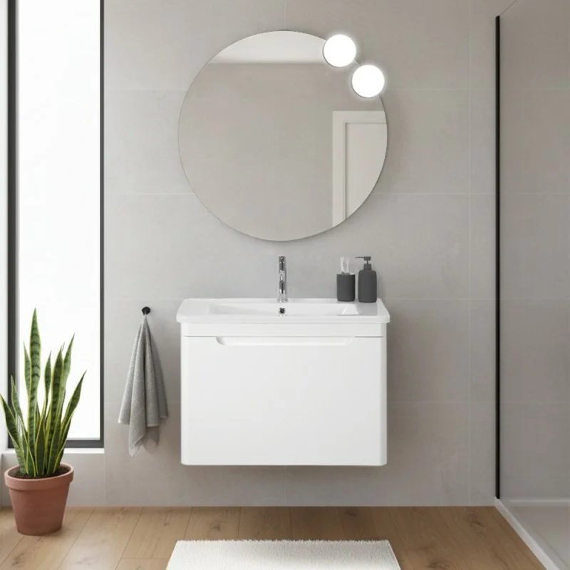Mobile bagno sospeso 80 cm bianco lucido con specchio 70x90 Stillo
