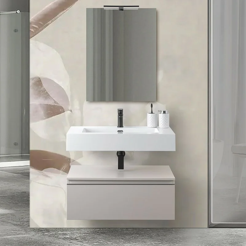 Mobile bagno 80 cm grigio perla con lavabo sospeso e specchio Iside