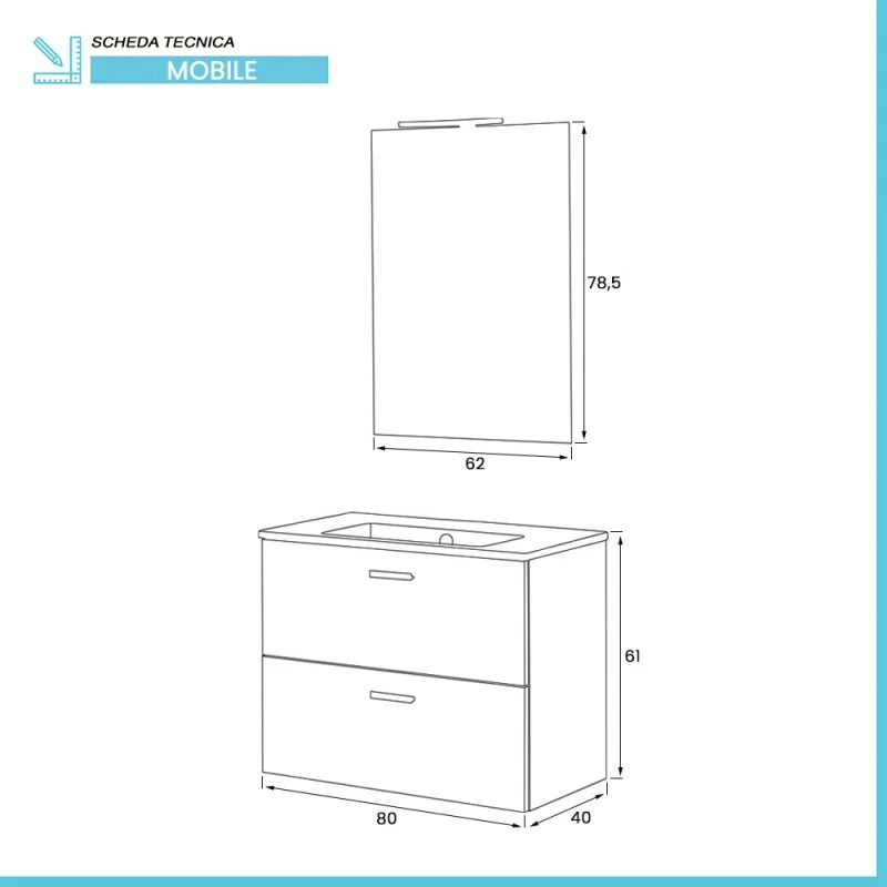 • Dimensioni mobile:L 80 x H 61 x p 40 cm;