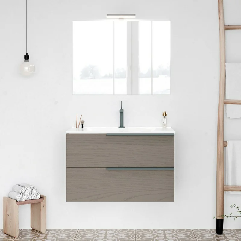 Mobile bagno sospeso 80 fango con lavabo in ceramica e specchio a filo LED  Victoria