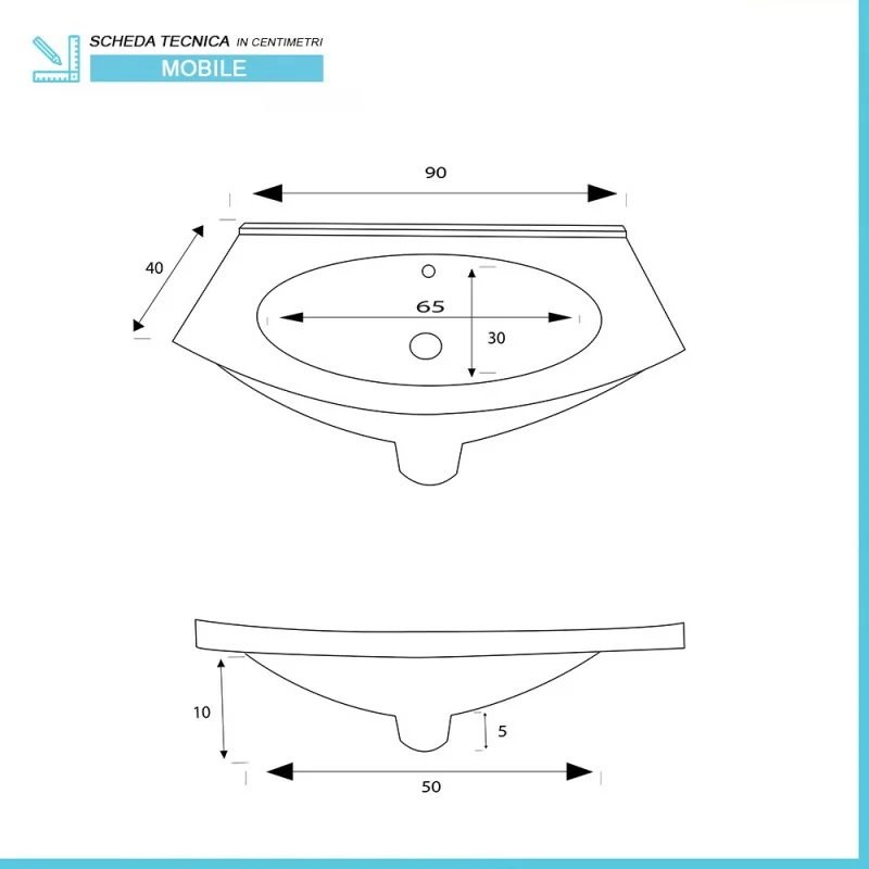 • Dimensioni lavabo:L 90 x p 40 cm;