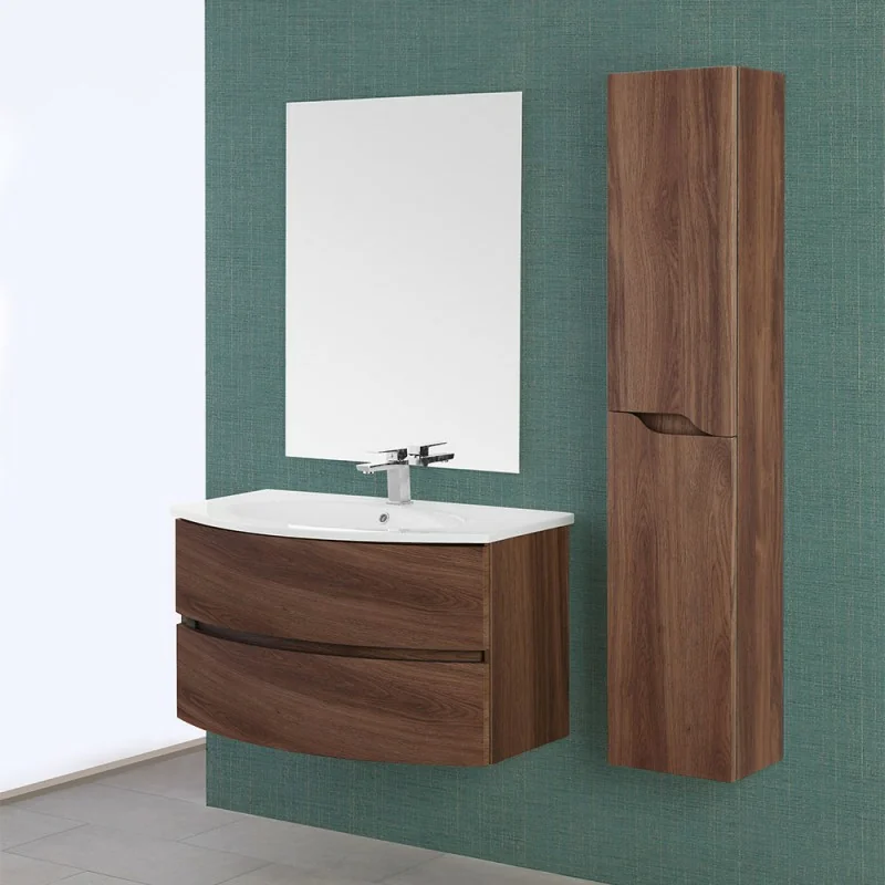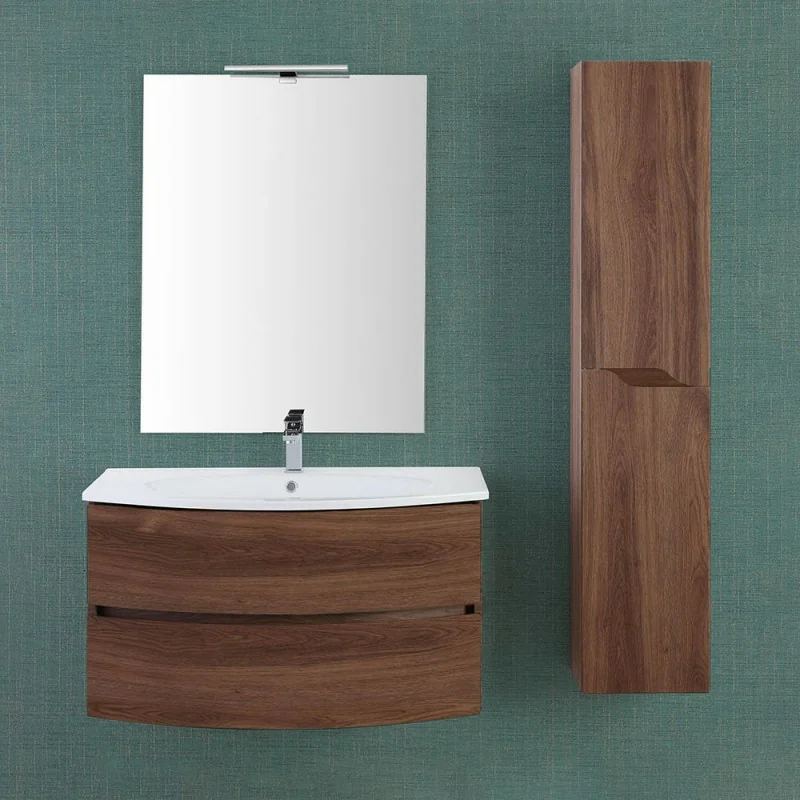 Mobile bagno sospeso 90 noce con lavabo e specchio 70x90 cm Maiori