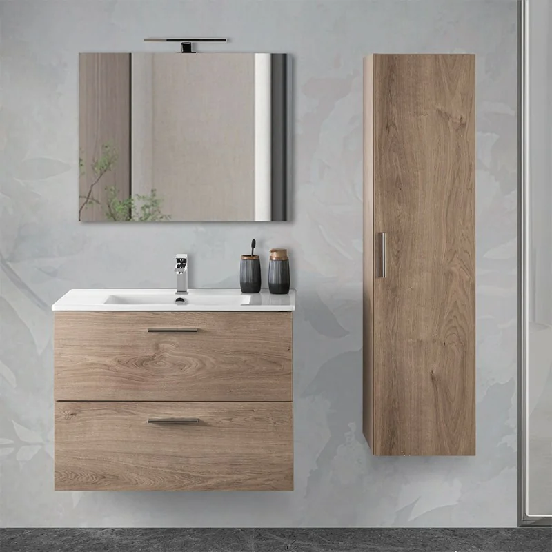 Mobile bagno sospeso 80 rovere africa con lavabo e specchio Miami