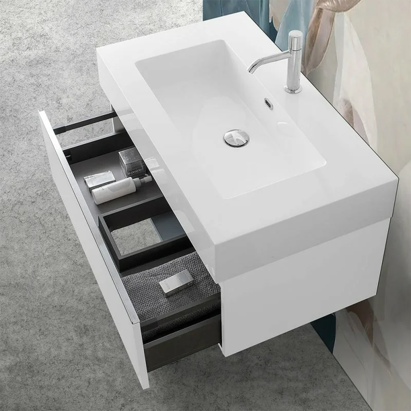 Mobile sospeso 80 cm bianco lucido lavabo in resina e specchio LED Iside