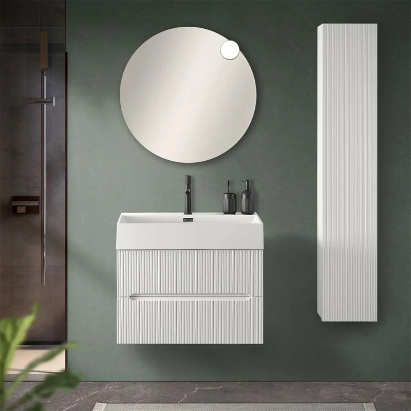Mobile bagno sospeso cannettato 70 cm bianco opaco con specchio | Bali