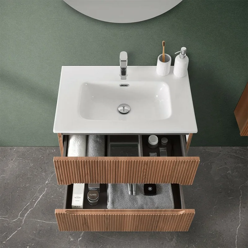 Mobile bagno sospeso – in legno con 2 cassetti soft-close,lavabo integrato e specchio a filo 70 cm