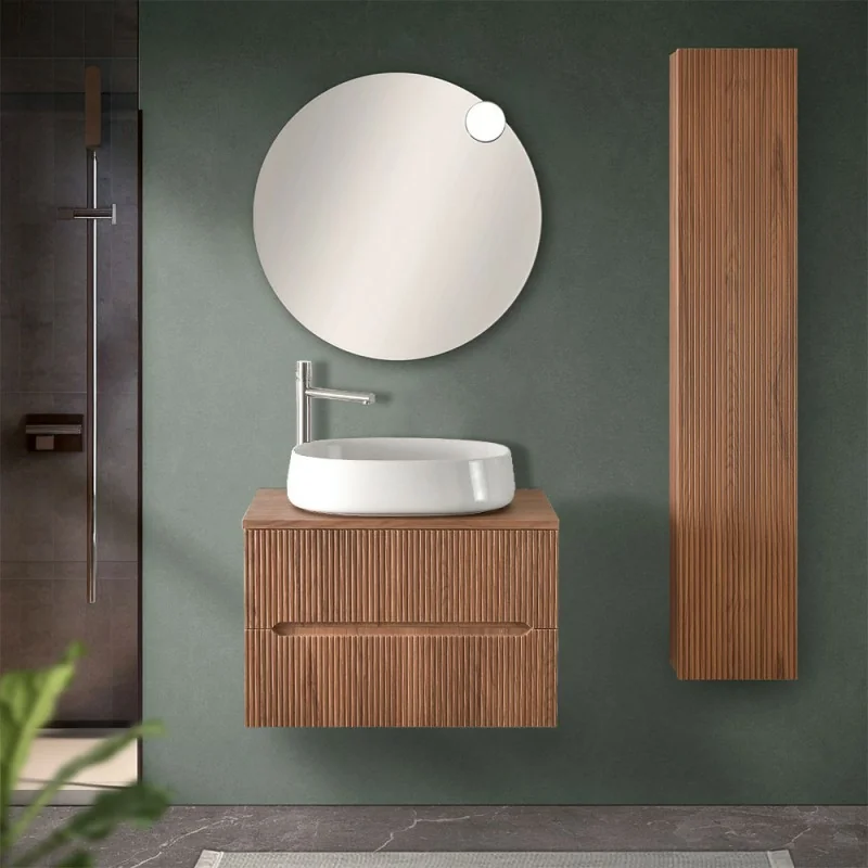 Mobile bagno sospeso cannettato 70 cm noce con top e specchio | Bali