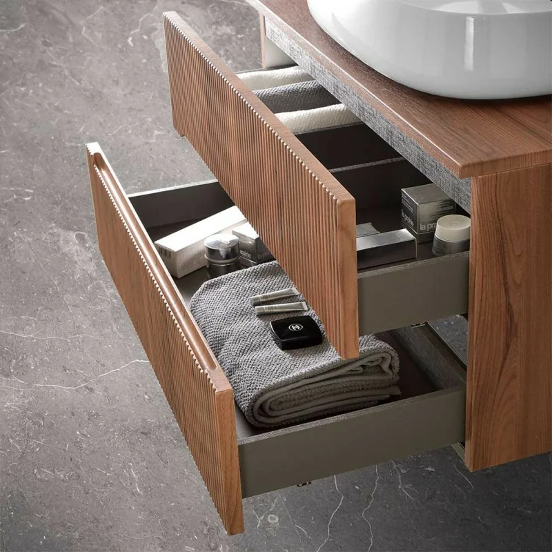 • 2 cassetti con alloggio salva-sifone,chiusura soft-close e apertura a gola;