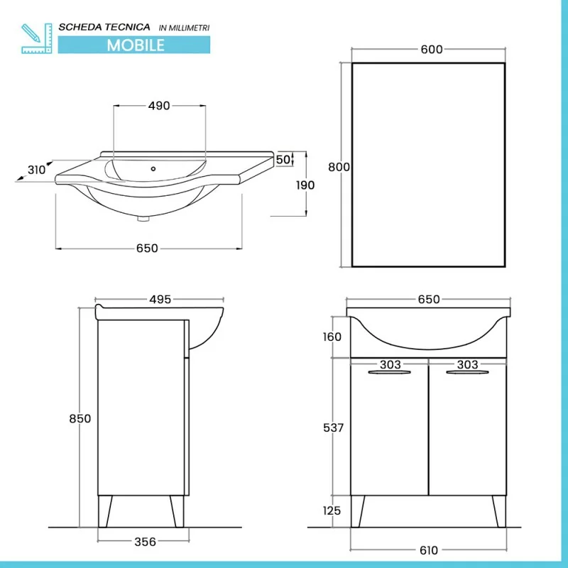 Composizione mobile bagno a terra caratteristiche tecniche: