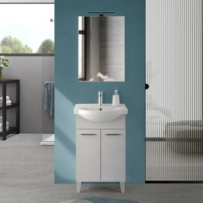 Composizione mobile bagno con 2 ante soft-close,lavabo in ceramica e specchio 60x80 cm