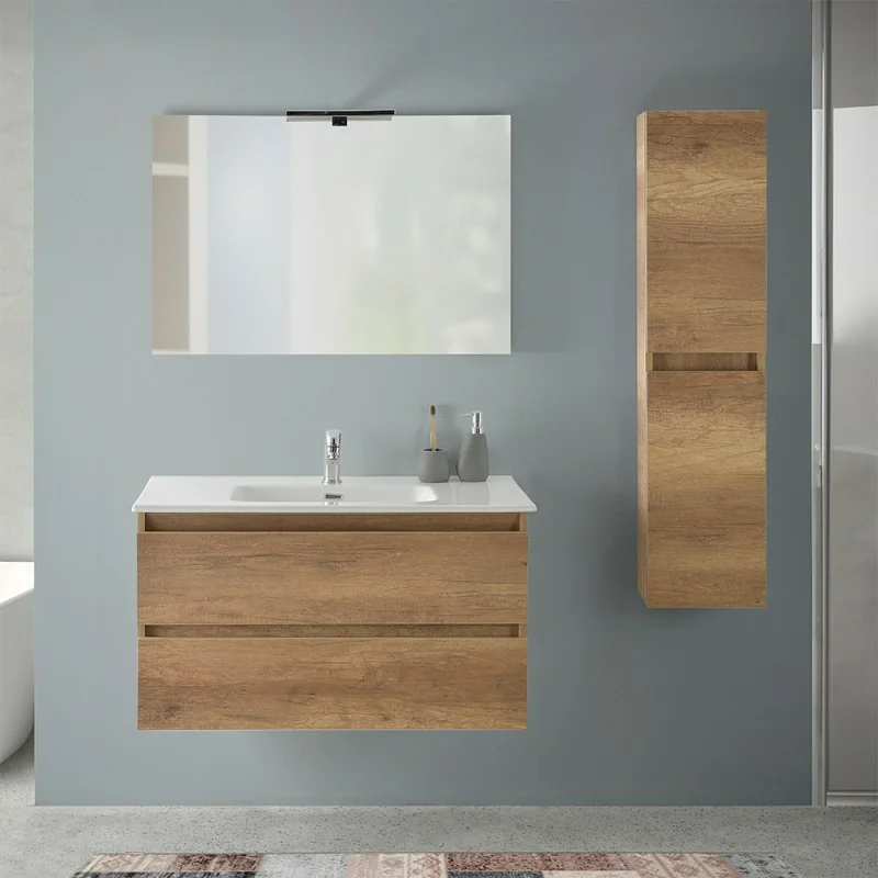 Mobile bagno sospeso 90 rovere naturale completo con 2 cassetti Nadia