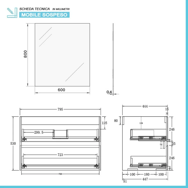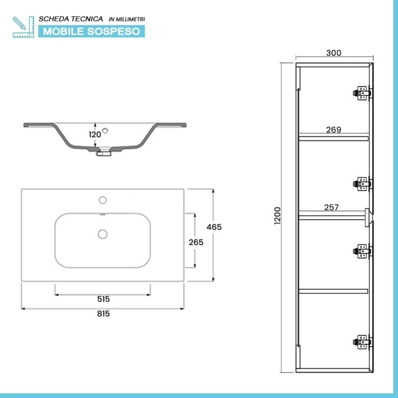Mobile bagno sospeso 80 cm caratteristiche tecniche: