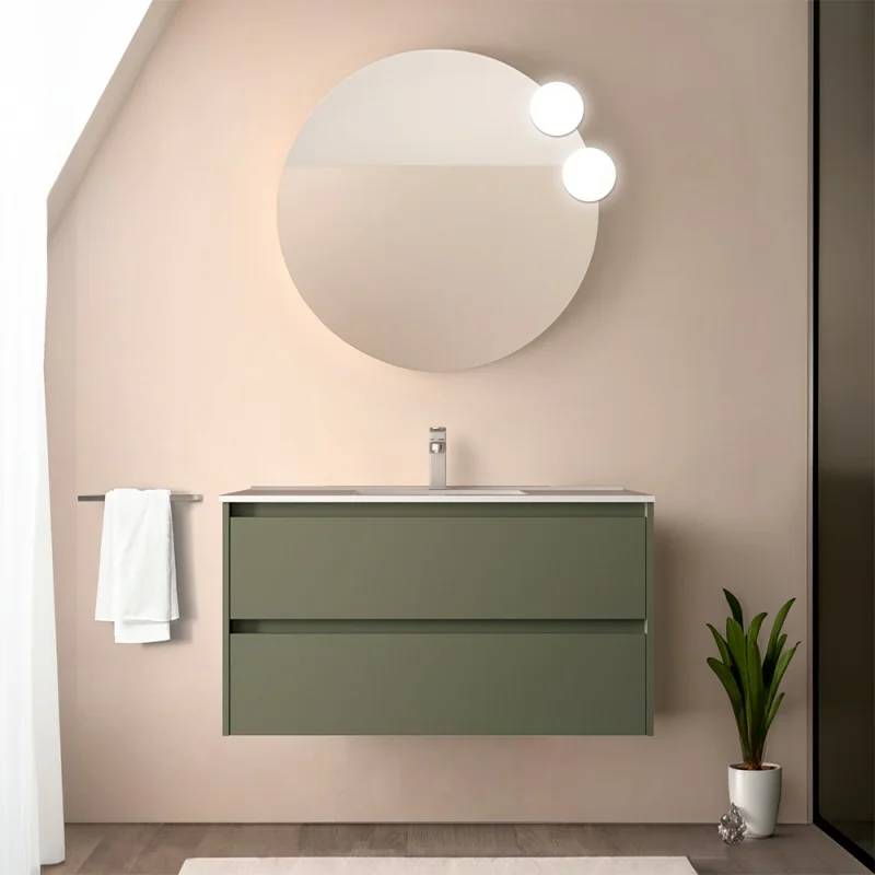 Mobile bagno sospeso 90 cm verde satinato con specchio e lavabo Gaya