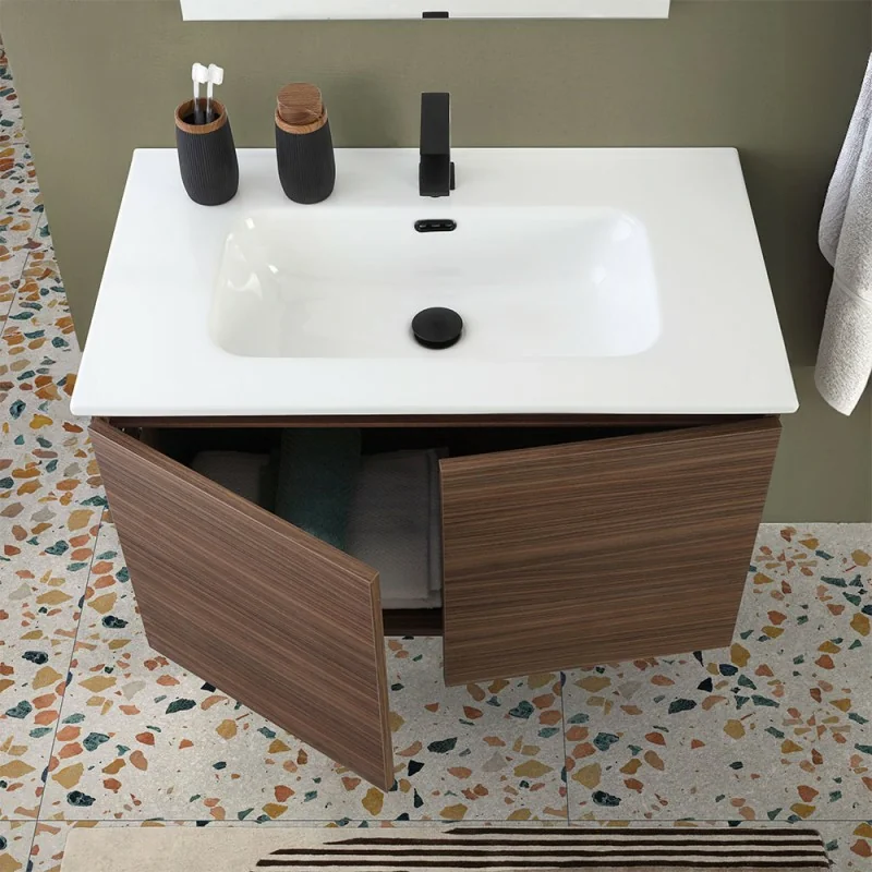Mobile bagno sospeso 80 cm noce canaletto con 2 ante soft-close Kleo