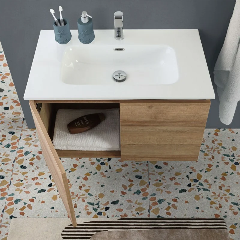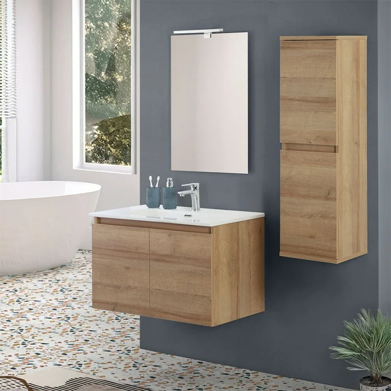 Mobile bagno sospeso 80 cm rovere africa con 2 ante soft-close Kleo