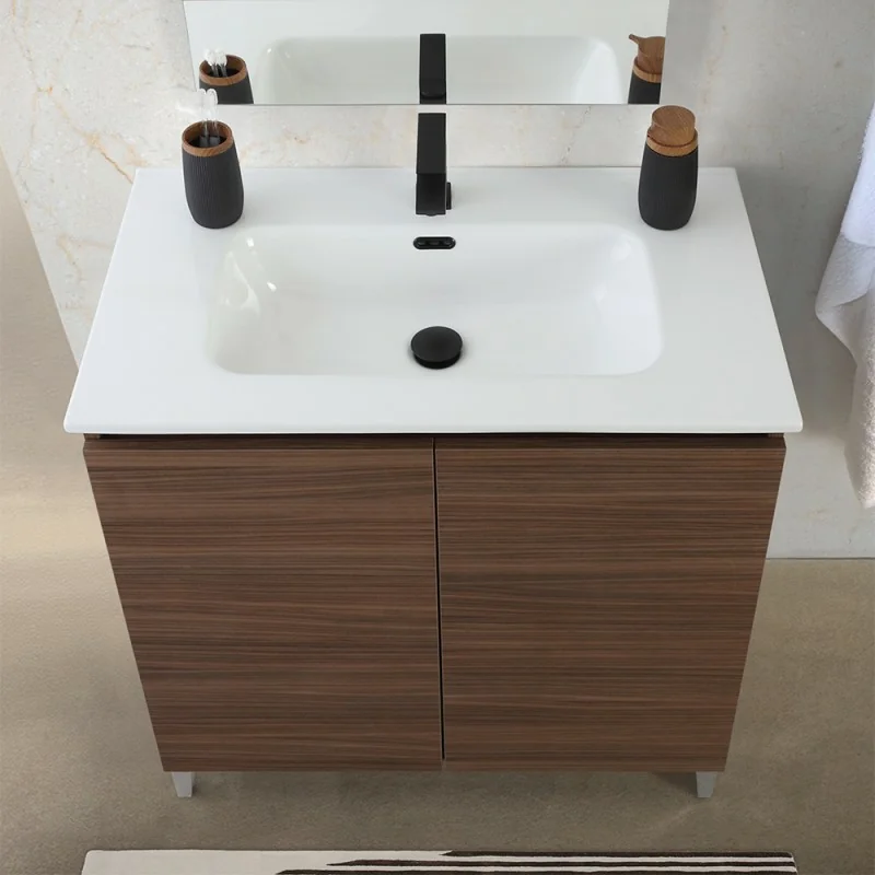 Mobile bagno a terra 80 cm noce canaletto con 2 ante soft-close Kleo