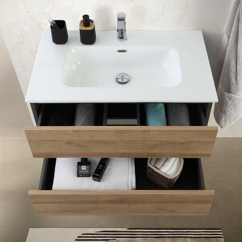 Mobile bagno sospeso 80 cm ossido e rovere con cassetti soft-close Kleo