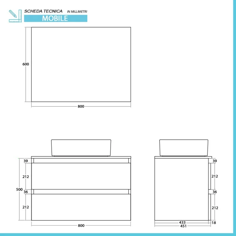 Mobile bagno sospeso 80 cm caratteristiche tecniche: