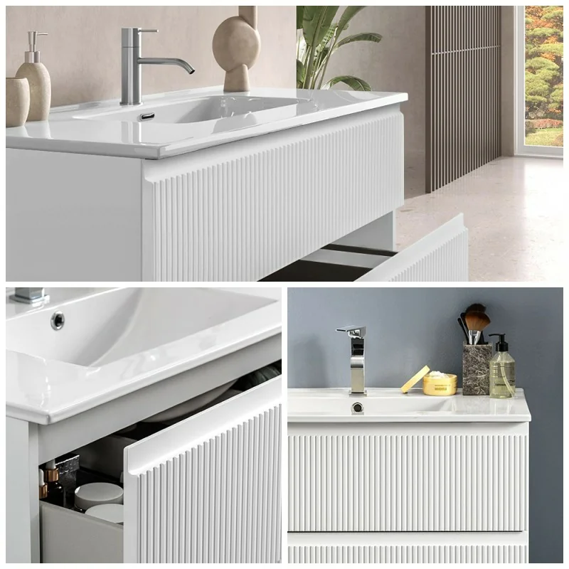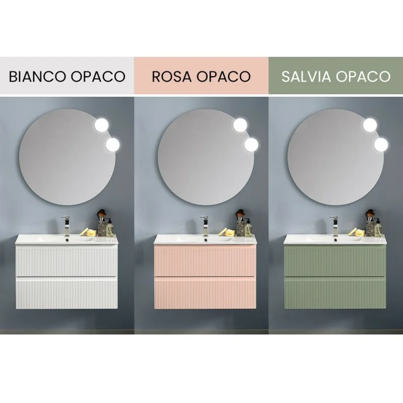 Mobile bagno sospeso 80 cm bianco opaco con frontale cannettato Giava