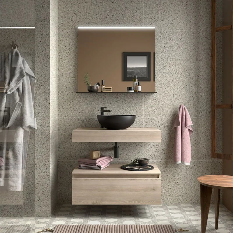 Top per lavabo da 80 cm in legno MDF rovere bali Sumo